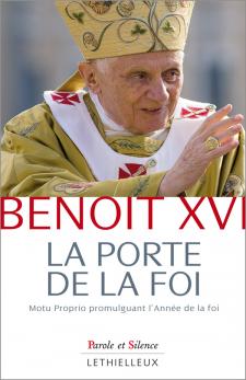 Benoît XVILa porte de la foiAprès l'Année saint Paul et l'Année du prêtre, Benoît XVI annonce l'Année de la foi du 11 octobre 2012 au 24 novembre 2013 par ce texte du Motu Proprio intitulé Porta fidei, la Porte de la foi. Il s'agit de réévangéliser l'Église, par "la foi, compagne de la vie". "Depuis le commencement de mon ministère comme Successeur de Pierre, j’ai rappelé l’exigence de redécouvrir le chemin de la foi pour mettre en lumière de façon toujours plus évidente la joie et l’enthousiasme renouvelé de la rencontre avec le Christ. l’Année de la foi est une invitation à une conversion authentique et renouvelée au Seigneur, unique Sauveur du monde. Dans le mystère de sa mort et de sa résurrection, Dieu a révélé en plénitude l’Amour qui sauve et qui appelle les hommes à convertir leur vie par la rémission des péchés."